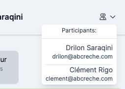 Lorsque vous initiez une conversation avec un parent depuis votre logiciel, cela va ouvrir une discussion avec vous et le parent. Vous pouvez voir la liste des participants d’une conversation en cliquant sur l'icône utilisateurs en haut à droite.
